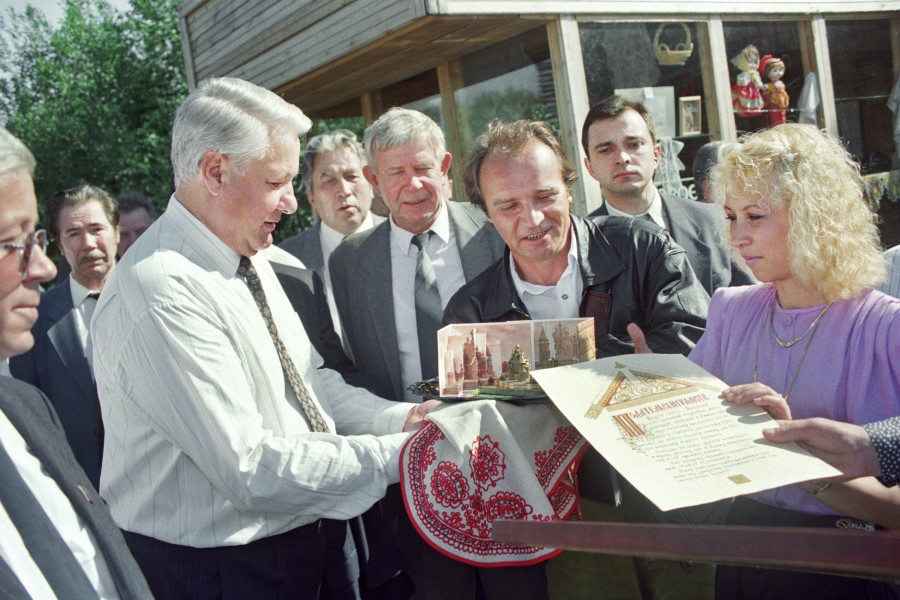Карелия. Президент РФ Борис Ельцин (слева) во время посещения острова Кижи 13 августа 1993.