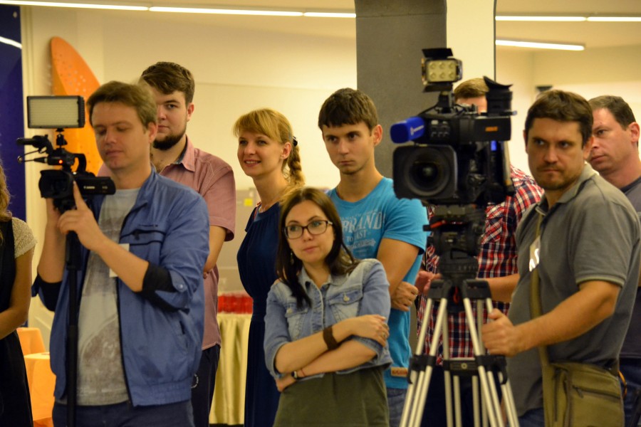 Журналисты на пресс-конференции, посвященной девятому международному фестивалю спектаклей для детей "Гаврош".