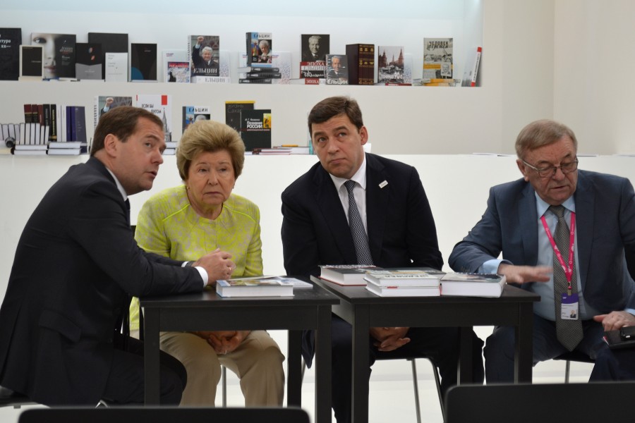 ИННОПРОМ 2014. Проходящую в Екатеринбурге юбилейную – пятую – международную промышленную выставку ИННОПРОМ, на которой представлен и Центр Б.Н. Ельцина, посетил премьер-министр России Дмитрий Медведев. Экспозиция Ельцин центра стала одним из пунктов выставочной «обязательной программы» премьера. Дмитрий Анатольевич встретился с супругой первого Президента России Наиной Иосифовной Ельциной и подробно ознакомился с экспозицией.