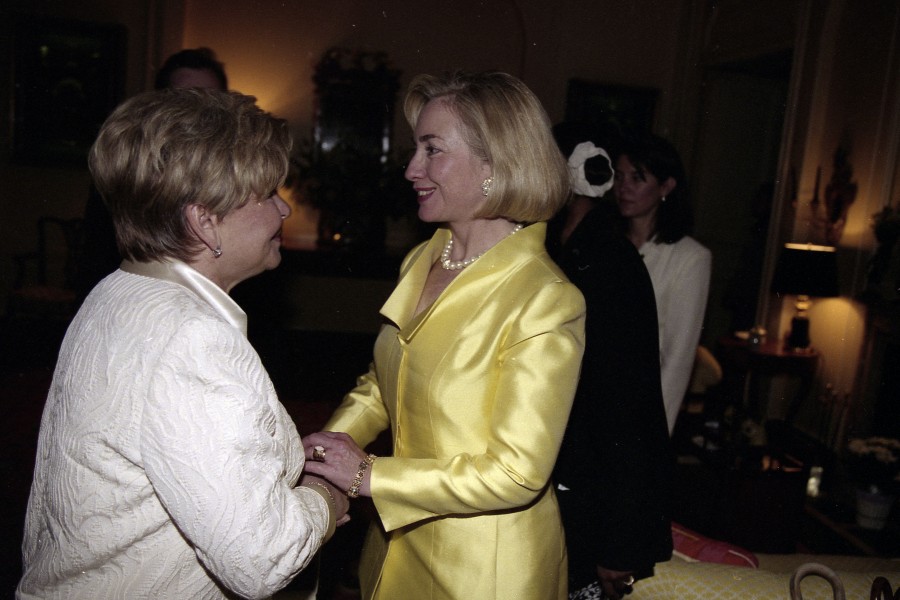 Пребывание президента РФ Бориса Ельцина на встрече глав государств и правительств стран «восьмерки». Супруга президента РФ Наина Ельцина и супруга президента США Хиллари Клинтон во время встречи