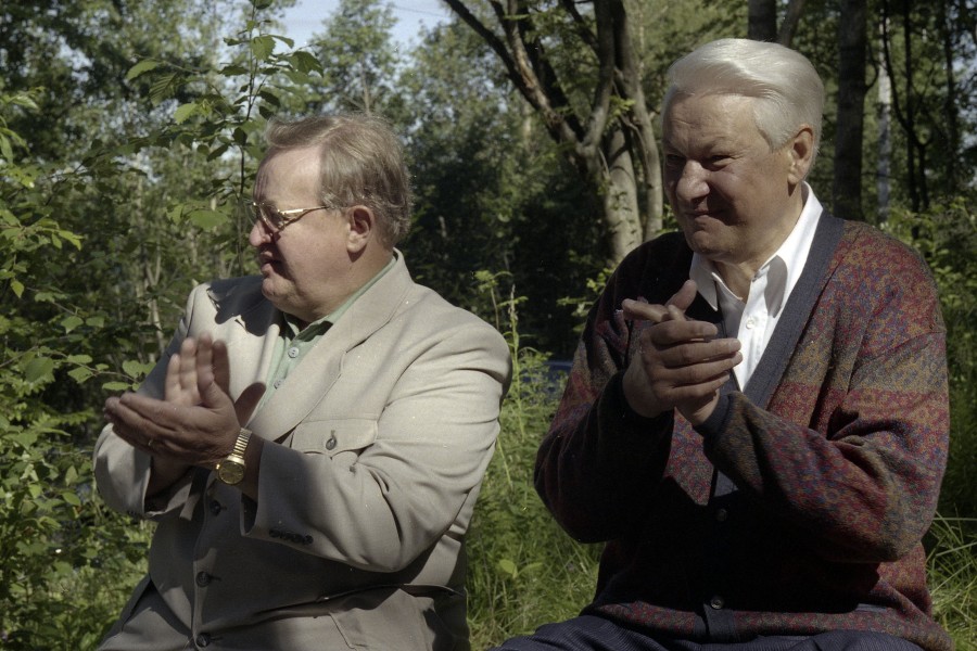 Президент РФ Борис Ельцин на отдыхе. Пребывание в Карелии президента Финляндии Мартти Ахтисаари. Президент РФ Борис Ельцин и президент Финляндии Мартти Ахтисаари во время посещения Дома Урхо