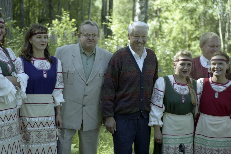Президент РФ Борис Ельцин на отдыхе. Пребывание в Карелии президента Финляндии Мартти Ахтисаари. Президент РФ Борис Ельцин и президент Финляндии Мартти Ахтисаари во время посещения Дома Урхо