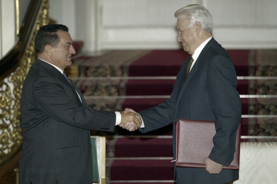 Визит в РФ президента Египта Хосни Мубарака. Во время подписания российско-египетской декларации