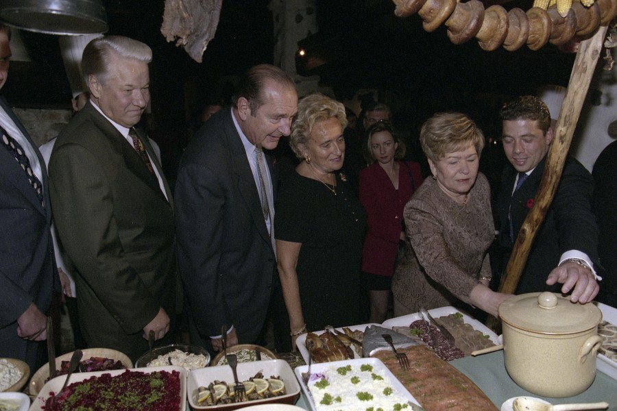 Государственный визит в РФ президента Французской Республики Жака Ширака с супругой Бернадент Ширак. Во время обеда в ресторане «Царская охота»