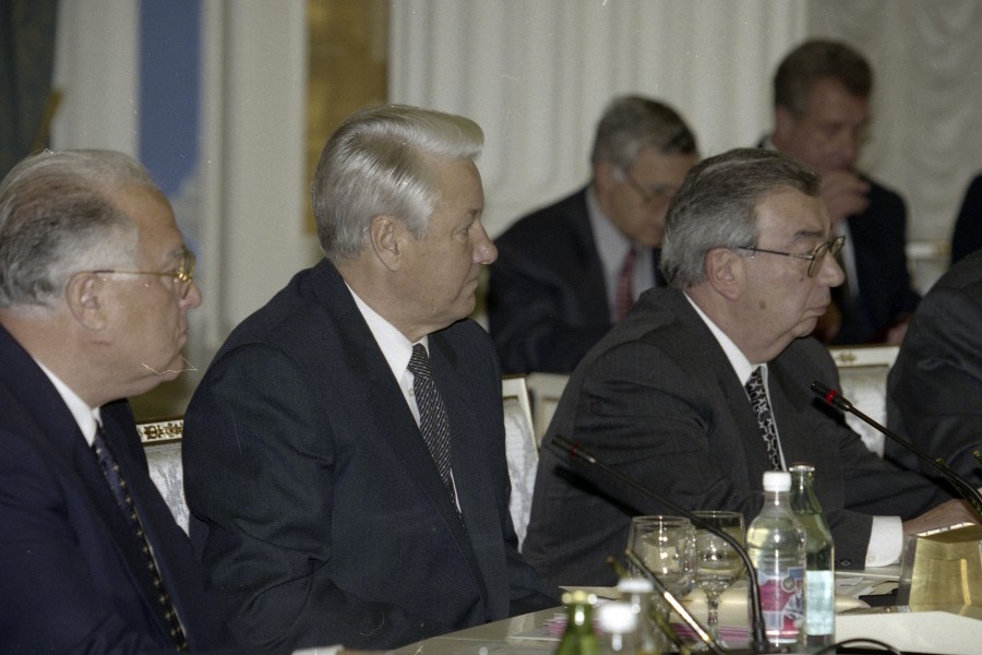 Заседание Межгосударственного совета России, Белоруссии, Казахстана и Киргизии. Председатель Правительства РФ В.С. Черномырдин, президент РФ Борис Ельцин, министр иностранных дел РФ Е.М. Примаков