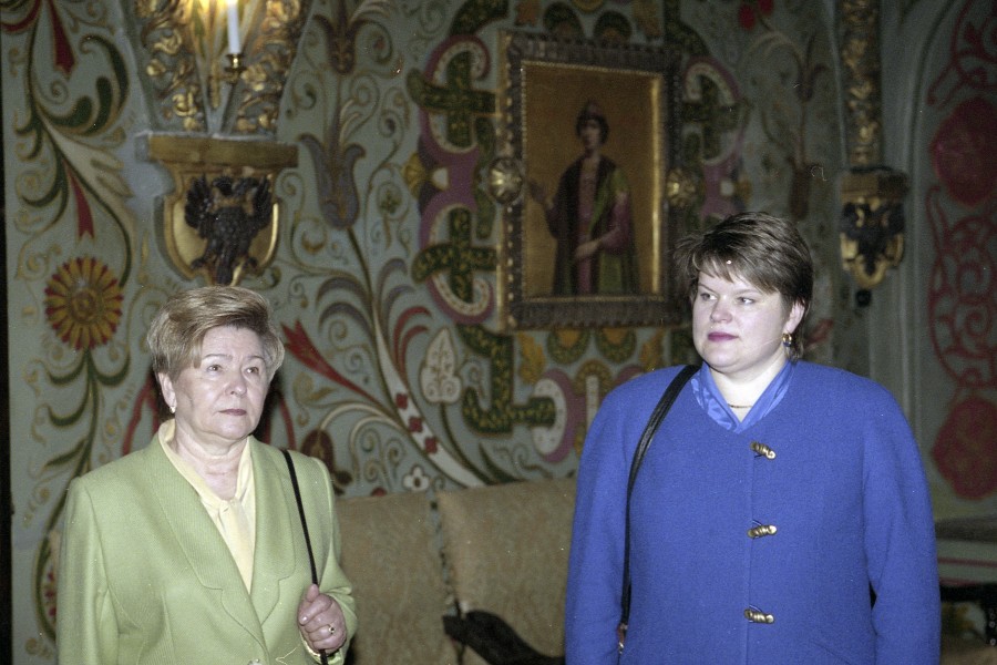 Официальный визит в РФ президента Литвы Альгирдаса Бразаускаса. Посещение супругой президента РФ Наиной Ельциной и дочерью президента Литвы Аудроне Усонене во время осмотра Большого Кремлевского дворца