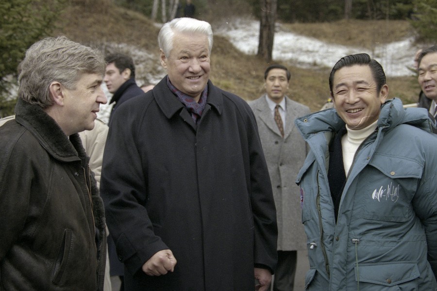 Пребывание президента РФ Бориса Ельцина в Красноярске. Президент РФ Борис Ельцин и премьер-министр Японии Рютаро Хасимото на территории резиденции «Сосны»