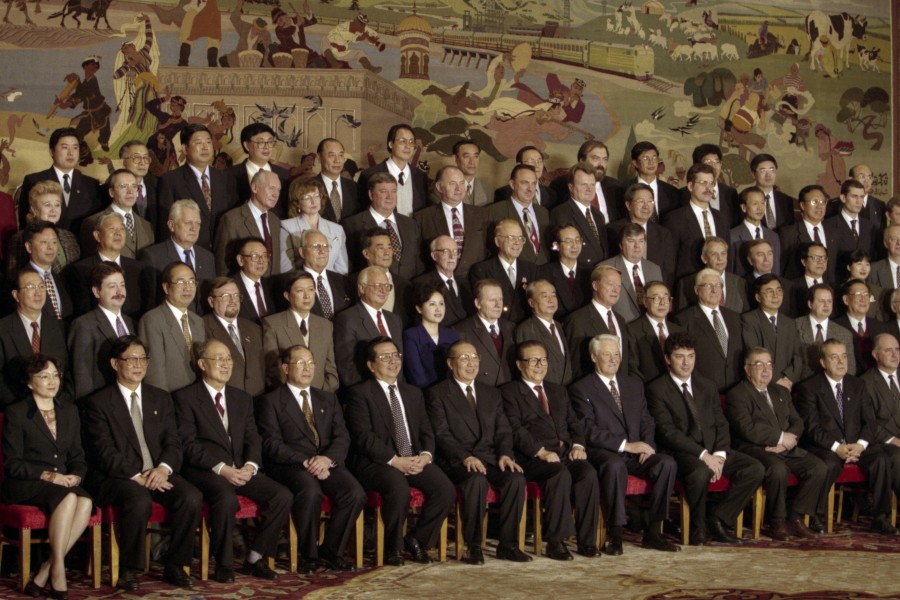 Государственный визит президента РФ Бориса Ельцина в Китайскую Народную Республику. Фотография на память