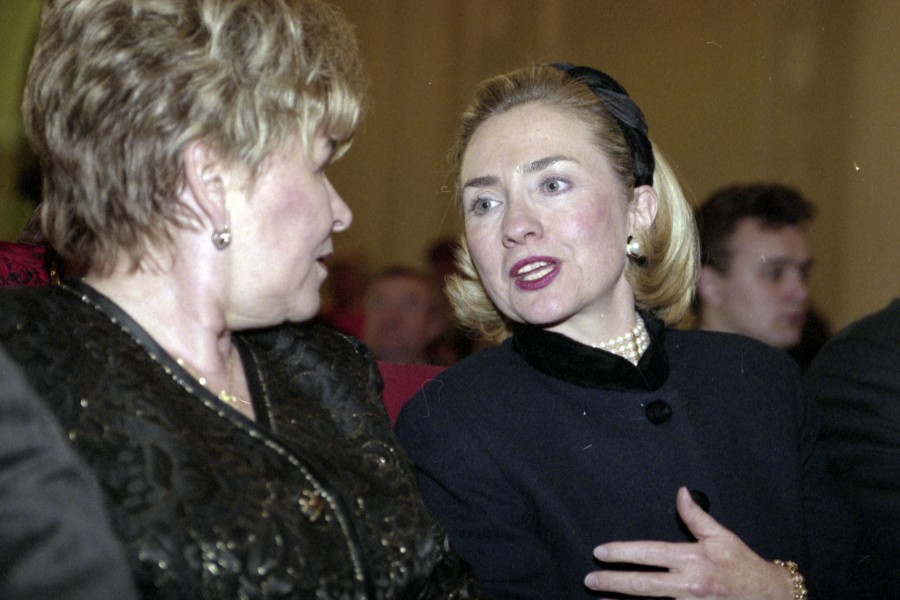 Встреча супруги президента РФ Наины Ельциной с супругой президента США Хиллари Клинтов в г. Екатеринбурге. На открытии нового зала филармонии