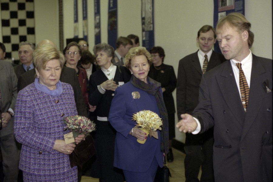 Визит президента Финляндии Мартти Ахтисаари в РФ. Супруга президента РФ Наина Ельцина и супруга президента Финляндии Ээва Ахтисаари во время осмотра финской выставки в доме художника на Крымском валу