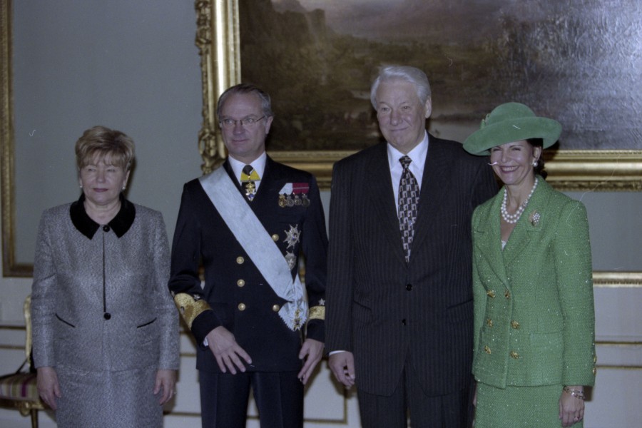 Государственный визит президента РФ Бориса Ельцина в Королевство Швеция. Президент РФ Борис Ельцин и король Швеции Карл XVI Густав с супругами