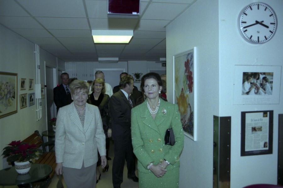 Государственный визит президента РФ Бориса Ельцина в Королевство Швеция. Супруга президента РФ Наина Ельцина во время посещения родильного отделения и женской консультации больницы Дандерюд