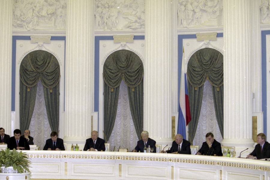 Президент РФ Борис Ельцин на первом заседании «Круглого стола» представителей двух ветвей власти, партий, общественно-политических движений и руководителей регионов