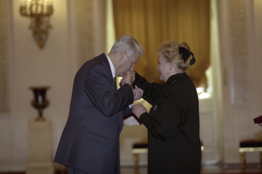 Вручение президентом РФ Борисом Ельциным государственных наград деятелям науки и культуры, а также ряду региональных руководителей и военнослужащих. Награждение артистки Государственного театра киноактера И. Бондарчук (Скобцевой)
