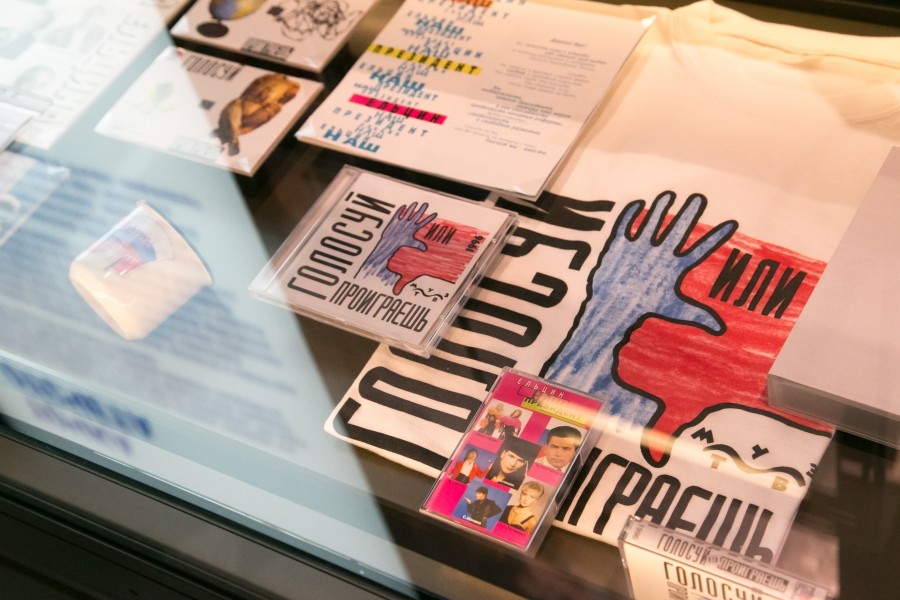 Экспозиция с плакатами к выборам 1996 года. Музей Бориса Ельцина