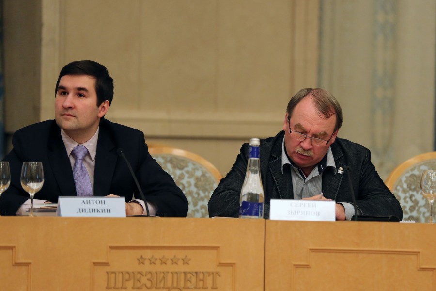 Антон Дидикин, доцент Новосибирского национального исследовательского государственного университета и Сергей Зырянов, директор Челябинского филиала РАНХиГС. Ельцин-форум в «Президент-Отеле»: прошлое и будущее новой России. Международная конференция «Новой российской государственности – 25 лет. Что дали стране и обществу эти годы? Что впереди?». 16 декабря 2015 года. Фото Елены Копыловой.