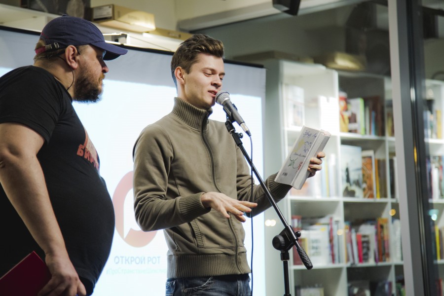 Михаил Фаустов, организатор чемпионата России по чтению вслух «Открой рот» в Ельцин Центре в Екатеринбурге. Фото Любови Кабалиновой.