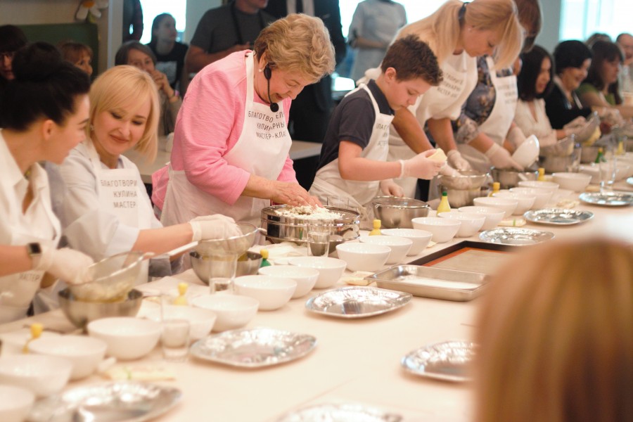 17 апреля в Детском кафе Ельцин Центра было оживленно и многолюдно. Более тридцати участников заявились на мастер-класс: врачи, рестораторы, бизнес-леди, политики, омбудсмены, дети и те, кто радуют стряпней своих домочадцев – бабушки и мамы. Среди участников Татьяна Мерзлякова —уполномоченный по правам человека в Свердловской области, Ольга Глацких — российская гимнастка, олимпийская чемпионка, заслуженный мастер спорта. Поддержали мероприятие жены министров, руководителей города и области. Болельщиков тоже собралось немало. И уж никак не могли пропустить это волнующее мероприятие друзья и одноклассники Татьяны Борисовны - дочери Бориса Николаевича и Наины Иосифовны.