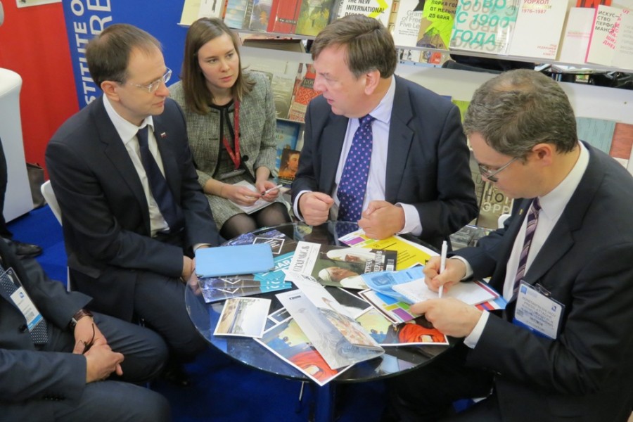 Встреча министра культуры Российской Федерации Владимира Мединского с министром культуры, СМИ и спорта Великобритании Джоном Уиттингдейлом. 45-я международная книжная ярмарка The London Book Fair прошла в британской столице 12-14.04.2016