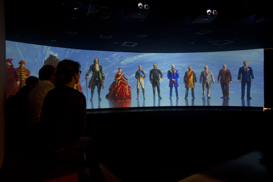 Лабирин Российской истории. Панорамный экран, на котором демонстрируется мульфильм, где с помощью компьютерной графики воссозданы переломные моменты российской истории