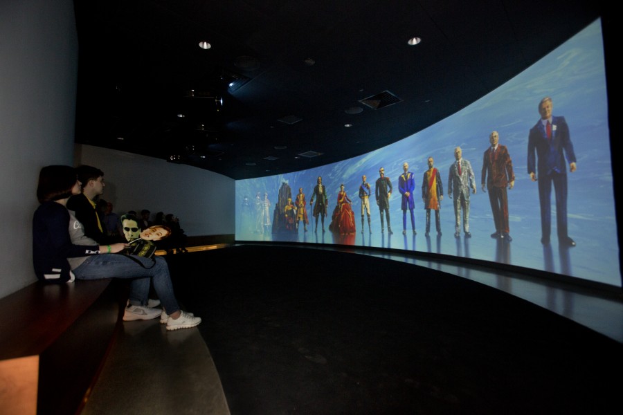 Лабирин Российской истории. Панорамный экран, на котором демонстрируется мульфильм, где с помощью компьютерной графики воссозданы переломные моменты российской истории