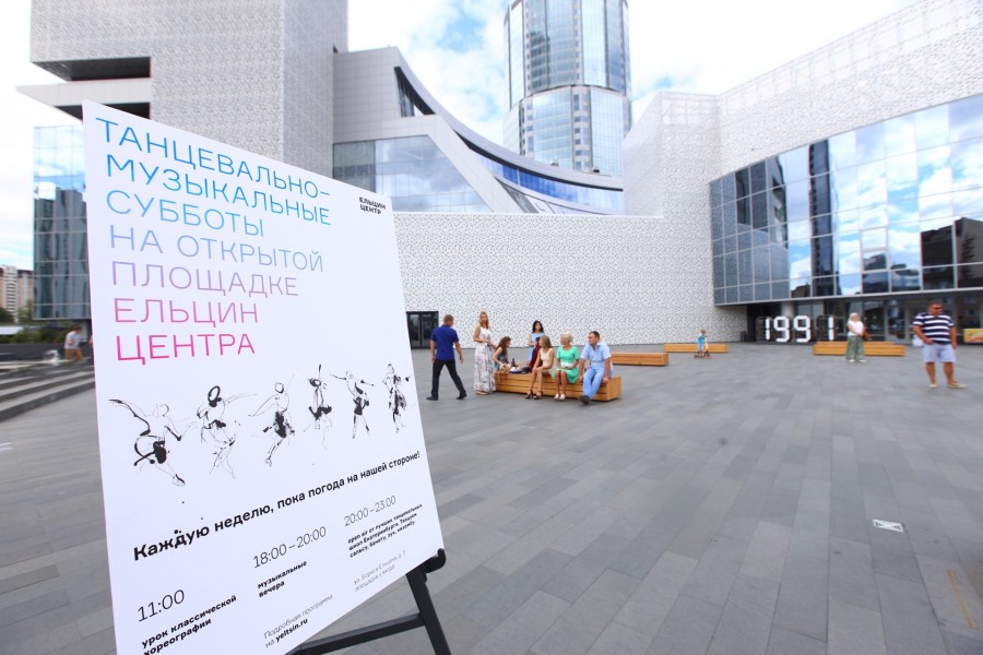 На площадке у Ельцин Центра по субботам любой желающий может взять урок классической хореографии от ТанцТеатра (Театр драмы).