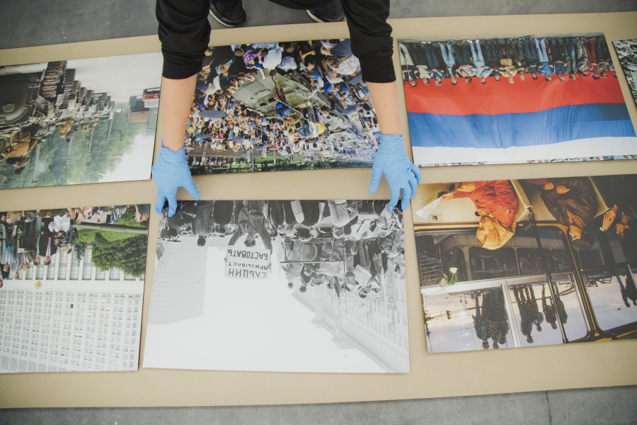 Монтаж фотовыставки «Август 91-го. Люди на площади»