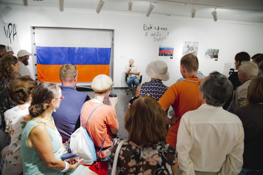 Одним из мероприятий специальной программы Ельцин Центра, посвященной 25-летию победы над ГКЧП, стала презентация уникального экспоната выставки «Август 91-го. Люди на площади» – российского триколора, который был поднят над Белым домом в Москве 22 августа 1991 года. Она состоялась в 17 часов в Арт-галерее. Виктор Ярошенко, почетный хранитель триколора, в 1991 году народный депутат СССР, рассказал историю флага.