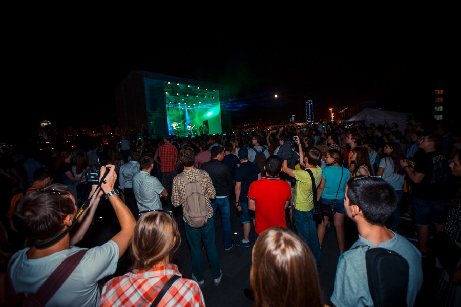 Специальная программа Ельцин Центра, посвященная 25-летию победы над ГКЧП, 19 августа продолжила свою работу для горожан и гостей города. На летней площадке Ельцин Центра в 21.00 выступила группа «Ногу Свело!» и ее фронтмен Максим Покровский с концертом «Рок на баррикадах». Более тысячи человек приветствовали любимую группу.