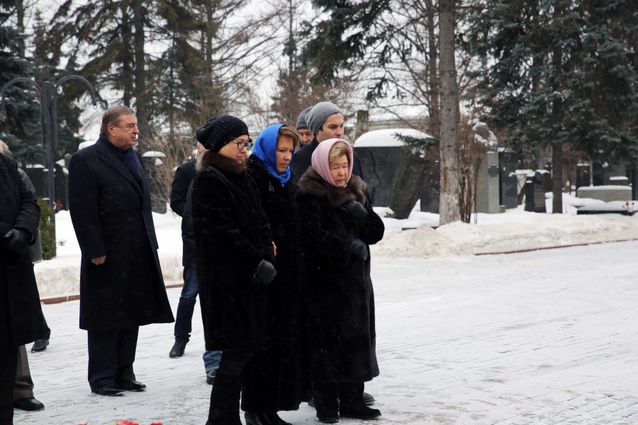 Возложение цветов к памятнику Бориса Ельцина на Новодевичьем кладбище 1 февраля 2017 года - в день рождения первого президента России.