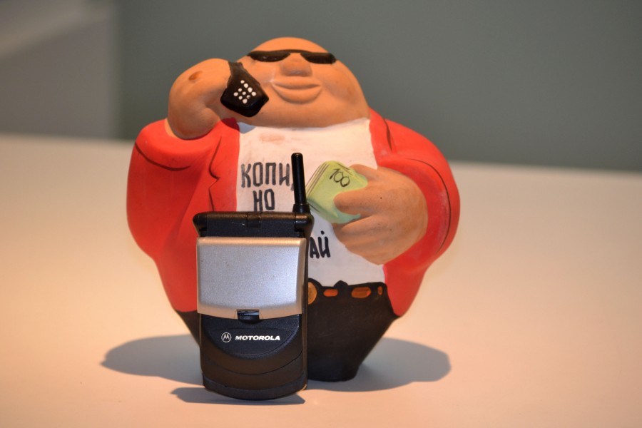 Большой удачей стал этот керамический сувенир – карикатурный образ бизнесмена, разбогатевшего в эпоху первоначального накопления капитала.