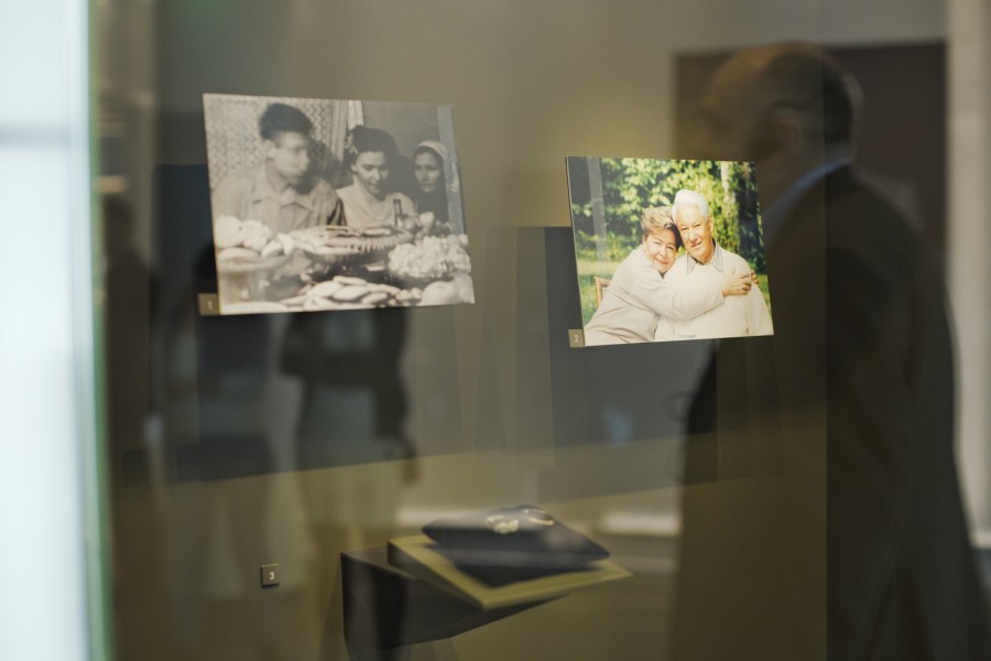 Экспозиция музея Б.Н. Ельцина. Свадебная фотография Ельциных и Ельцины на даче.