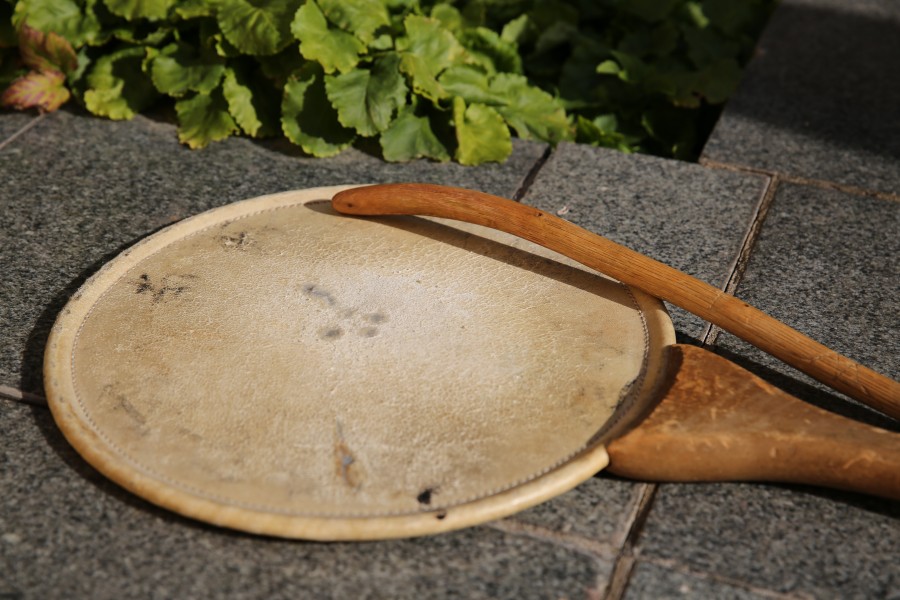 Японский молитвенный барабан утива-дайко буддийского ордена Ниппондзан Мёходзи. Вторая половина XX в. Кожа, металл, нить, дерево, краски.