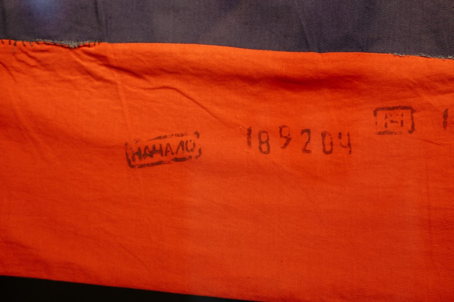 Этот флаг был изготовлен в августе 1991 года рабочими производственного объединения «Уралэлектротяжмаш» для митинга протеста против действий самопровозглашенного Государственного комитета по чрезвычайному положению.