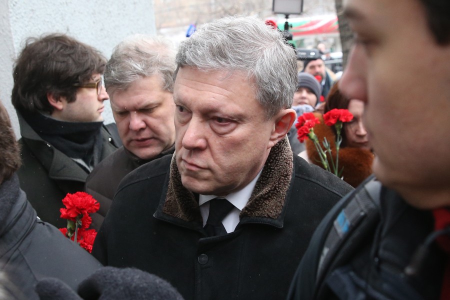 Россия. Москва. Прощание с Борисом Немцовым. Глава фракции "Яблоко" в Законодательном собрании Санкт-Петербурга Григорий Явлинский (справа налево) у Сахаровского центра перед церемонией прощания с политиком Борисом Немцовым. Артем Коротаев/ТАСС