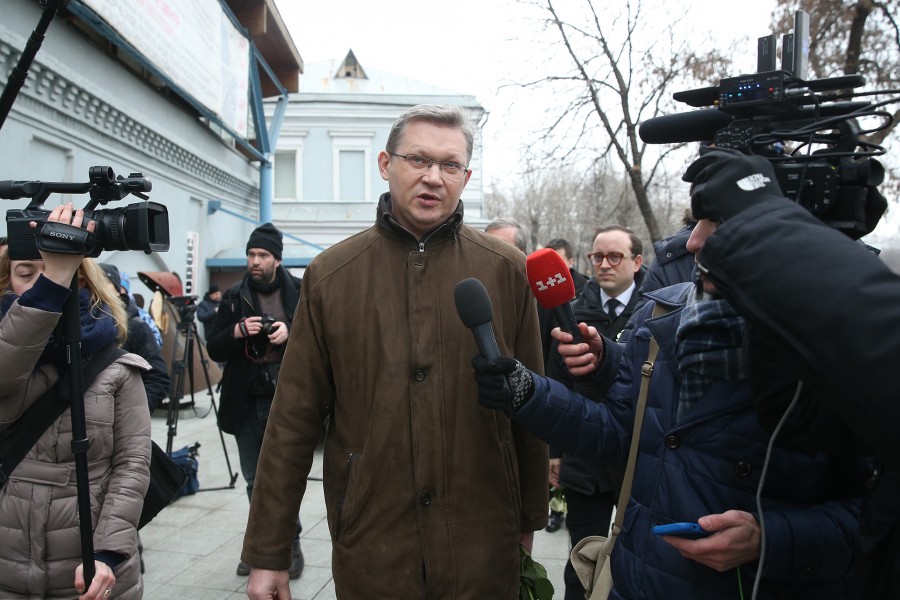 Россия. Москва. Прощание с Борисом Немцовым. Сопредседатель партии РПР-ПАРНАС Владимир Рыжков (в центре) у Сахаровского центра перед церемонией прощания с политиком Борисом Немцовым. Артем Коротаев/ТАСС (03.03.2015)