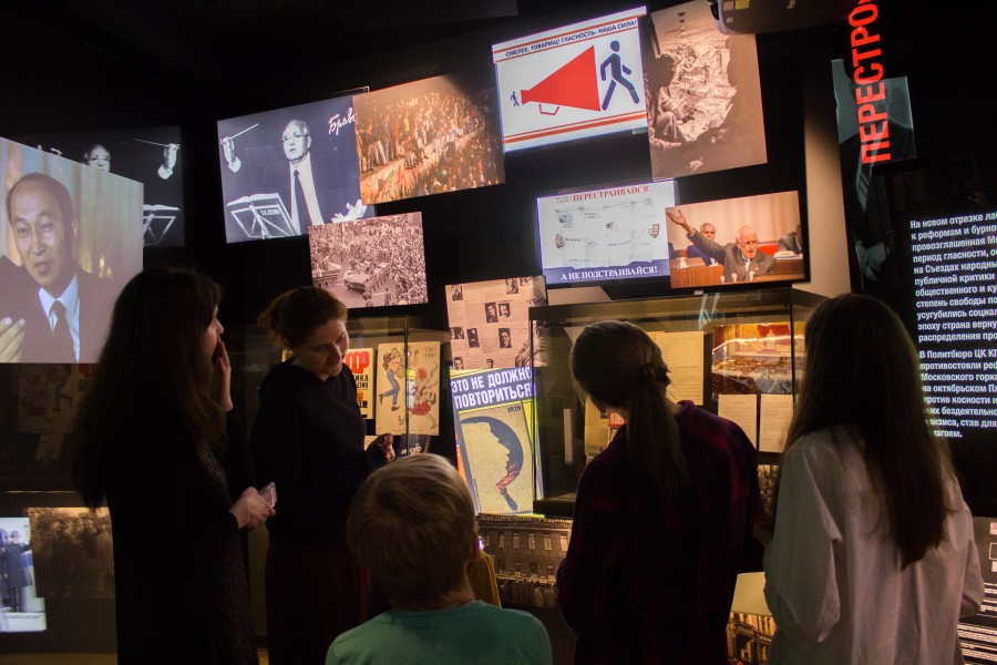 Первая художественная мастерская из детской абонементной программы по искусству и дизайну XX – XXI веков состоялась 9 февраля в Арт-галерее Ельцин Центра. Она была посвящена искусству плаката. (На фото: перестройка, гласность, профиль Сталина, коолективизация, Андрей Сахаров)