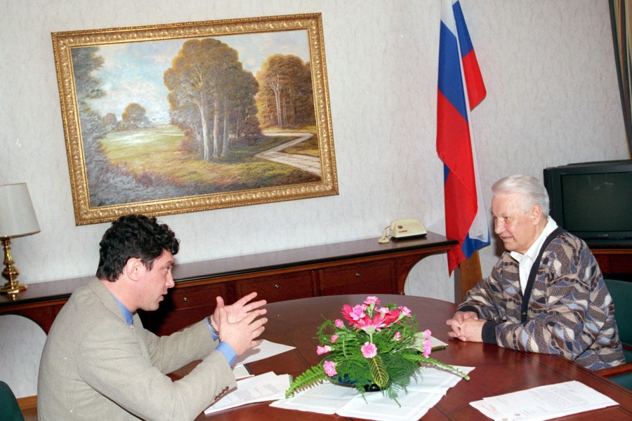 Президент России Борис Ельцин 30 апреля провел в своей резиденции в Сочи рабочую встречу с первым вице-премьером Борисом Немцовым. На снимке: во время встречи Борис Ельцин (справа) и Борис Немцов.