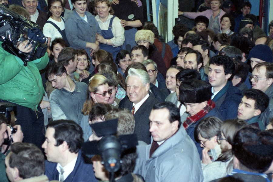 Губернатор Борис Немцов сопровождает президента РФ Бориса Ельцина во время поездки по городам Поволжья в Нижнем Новгороде (10.01.1992). Дмитрий Донской/Архив Президентского центра Б. Н. Ельцина