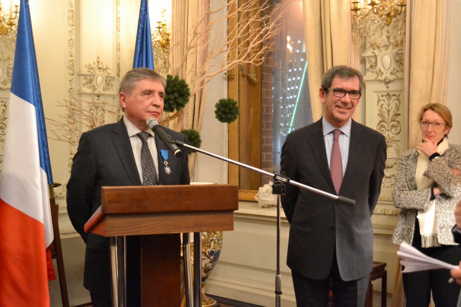Торжественное награждение французским национальным орденом «За заслуги» директора Центра Ельцина Александра Дроздова. На фото - Александр Дроздов и Жан-Морис Рипер
