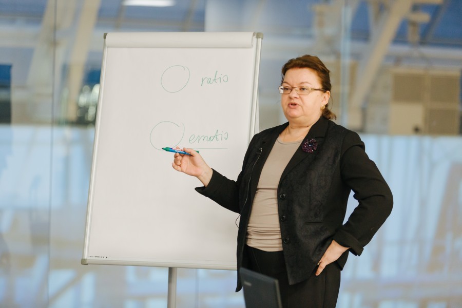 Преподаватель УрФУ имени Бориса Ельцина, доктор филологических наук, специалист в области практической риторики и межкультурной коммуникации Татьяна Ицкович прочла лекцию о том, как наладить контакт с аудиторией, как быть услышанным и добиться своей цели, презентуя проект потенциальным партнерам.
