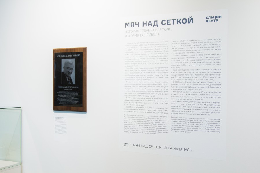 На открытии выставки «Мяч над сеткой. История тренера Карполя, история волейбола», приуроченной к турниру на Кубок первого президента России Бориса Ельцина, этапа Лиги Наций и посвященной 80-летию Николая Карполя, тренера женской волейбольной команды «Уралочка».