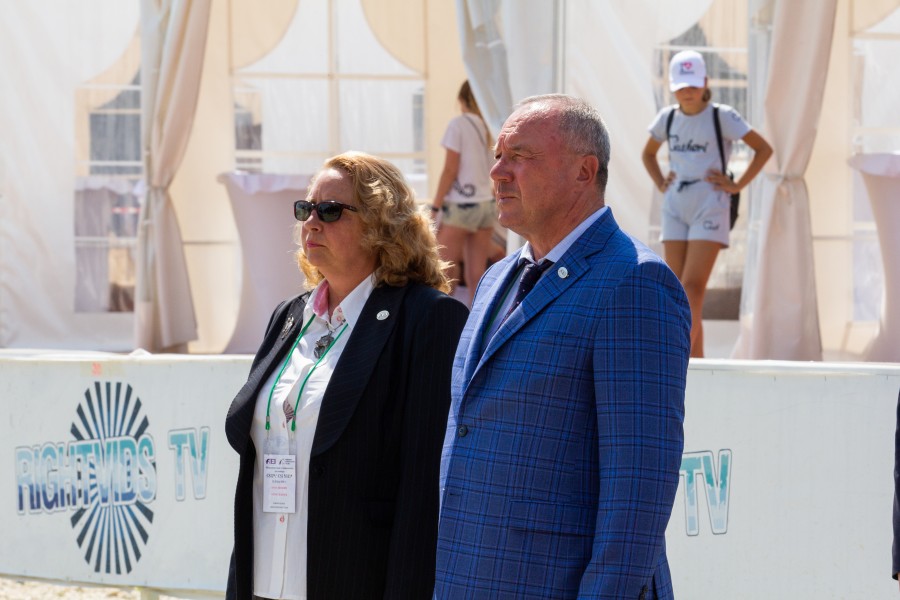Судья Анна Скабард, главный тренер сборных команд России по конному спорту Борис Кузьмин