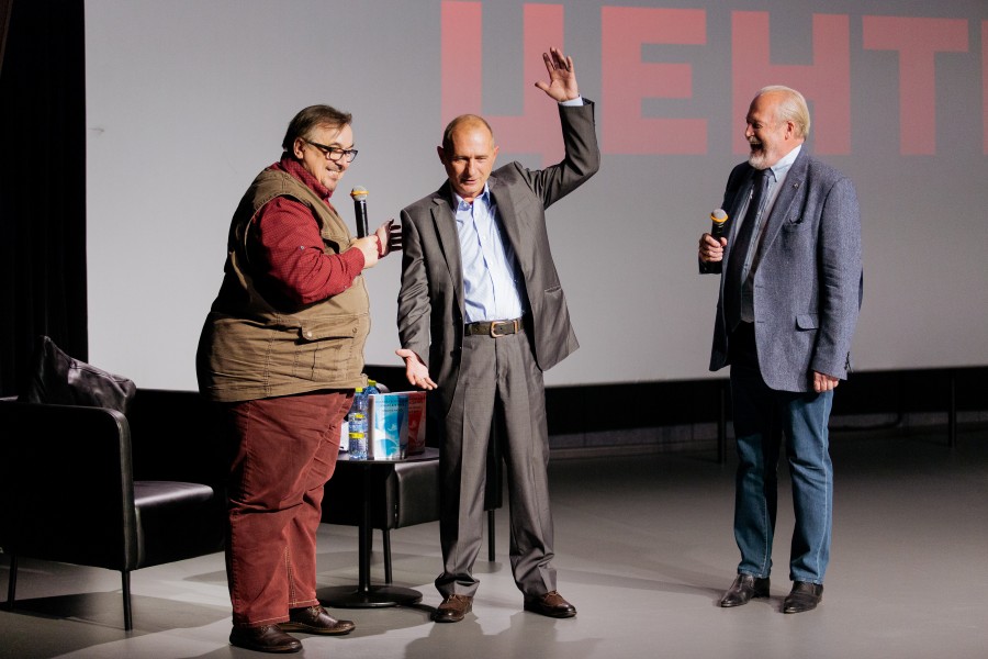 День кино отметили в Ельцин Центре юбилейным вечером, посвященным 30-летию культового фильма Владимира Хотиненко «Зеркало для героя». 27 августа режиссер пригласил не только участников киноклуба и поклонников фильма, но и тех, кто имел отношение к его созданию. Просмотр двухсерийного фильма состоялся воскресным вечером накануне для всех желающих. Вели вечер народный артист России, режиссер, сценарист, педагог Владимир Хотиненко и бессменный ведущий киноклуба, киновед, критик, член Российской академии кинематографических искусств «Ника», лауреат премии Москвы Вячеслав Шмыров.