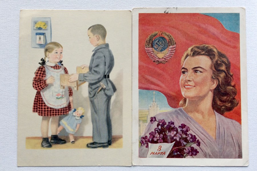 Подарок, художник Т. Ерёмина. Изогиз (1955 год) и открытка выпущенная Министерством связи СССР, художник И. Тоидзе / Марина Соколовская
