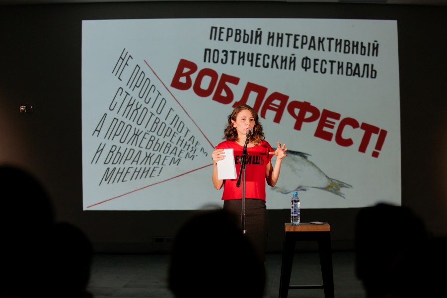В зале Театральной платформы «В Центре» 22 марта был аншлаг. На сцене друг друга сменяли поэты, которые не только читали свои стихи, но и отвечали на вопросы публики. Поэтический фестиваль «Воблафест» впервые выбрал Ельцин Центр своей площадкой.