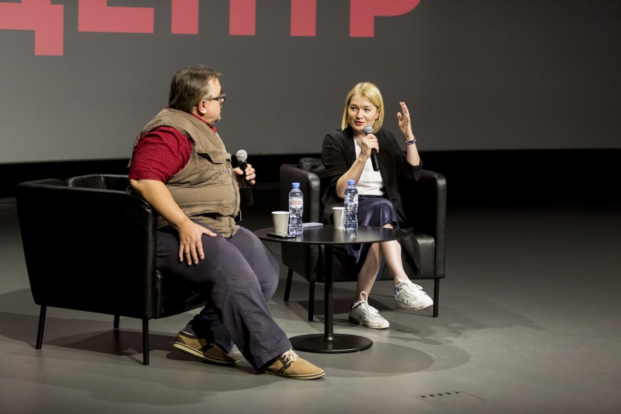 Киноклуб Ельцин Центра 24 июня принимал у себя в гостях актрису театра и кино Викторию Толстоганову. Лето в разгаре, но работа киноклуба не прекращается. Виктория и ведущий – киновед Вячеслав Шмыров – только что вернулись с тридцатого, юбилейного кинофестиваля «Кинотавр» и первые вопросы к ним были об этом.