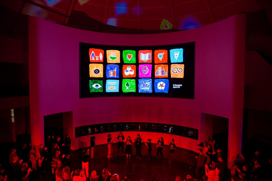 2019_09_21 Музей. Museum after hours. Мир. Л.Кабалинова Принципы ООН глазами детей. Как видят развитие мира те, кто только начинает в нём жить? Ежегодно 21 сентября отмечается Международный день мира. В Музее Бориса Ельцина празднование прошло в формате интерактивной мультимедийной инсталляции. На экране демонстрировались анимационные ролики, раскрывающие 17 принципов устойчивого развития мира, а в перерывах между роликами их юные создатели через песни, танец и другие коллективные действия вовлекали посетителей в процесс осмысления материала. Мероприятие прошло в рамках недавно запущенного проекта формата museum after hours («музей после закрытия»). Все средства от продажи билетов на него направляются в благотворительный фонд «Созидание» для помощи нуждающимся детям.