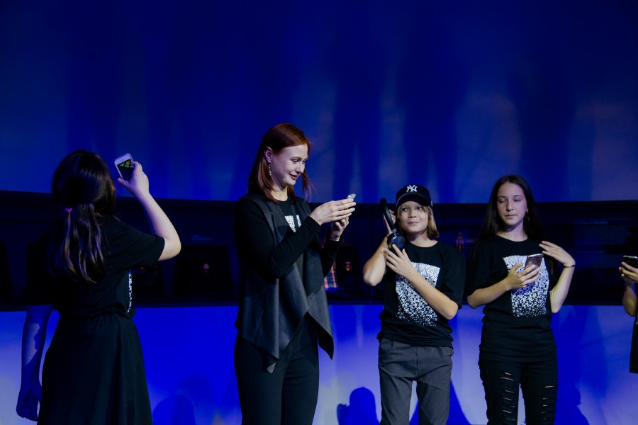 2019_09_21 Музей. Museum after hours. Мир. Л.Кабалинова Принципы ООН глазами детей. Как видят развитие мира те, кто только начинает в нём жить? Ежегодно 21 сентября отмечается Международный день мира. В Музее Бориса Ельцина празднование прошло в формате интерактивной мультимедийной инсталляции. На экране демонстрировались анимационные ролики, раскрывающие 17 принципов устойчивого развития мира, а в перерывах между роликами их юные создатели через песни, танец и другие коллективные действия вовлекали посетителей в процесс осмысления материала. Мероприятие прошло в рамках недавно запущенного проекта формата museum after hours («музей после закрытия»). Все средства от продажи билетов на него направляются в благотворительный фонд «Созидание» для помощи нуждающимся детям.