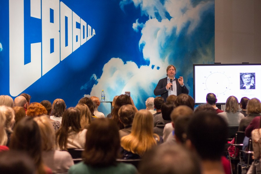 Выступление нейробиолога, специалиста по нейроэкономике Василий Ключарёва прошло в зале Свободы в рамках курса «Высшая лига» – цикла публичных лекций самых ярких профессоров Высшей школы экономики.